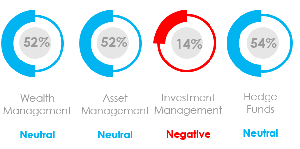 - Wealth Management and Hedge Funds both slid into neutral territory.